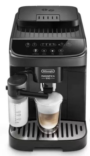 Ekspres ciśnieniowy DE Longhi Ecam290.51.B Odkryj świat aromatycznej kawy w zaciszu własnego domu z ekspressem ciśnieniowym DE Longhi Ecam290.51.B. Ten elegancki, czarny ekspres to połączenie nowoczesnego designu i zaawansowanej technologii, które zapewnią Ci doskonałą kawę za każdym razem. Korzyści: – Moc 1450 W – Ciśnienie 15 bar – Technologia LatteCrema Hot – Wbudowany młynek stalowy żarnowy – Prosta obsługa i intuicyjny panel sterowania – Zaawansowana technologia parzenia – Elegancki design, który pasuje do każdej kuchni Technologia LatteCrema Hot Ciesz się długotrwałą bogatą kremową pianką mleczną o odpowiedniej temperaturze oraz doskonałym napojem w filiżance,a także automatycznym czyszczeniem za jednym dotknięciem przycisku po każdym użyciu. Prosta obsługa i intuicyjny panel sterowania Ekspres De Longhi Magnifica Evo oferuje niezwykle prostą obsługę, dzięki intuicyjnemu panelowi sterowania z wyświetlaczem. Za pomocą zaledwie kilku przycisków przygotujesz swoje ulubione napoje kawowe, dostosowując parametry parzenia, takie jak moc kawy i ilość wody. Dzięki temu, codzienne parzenie kawy staje się szybkie i wygodne, bez konieczności skomplikowanej obsługi. Zaawansowana technologia parzenia De Longhi Magnifica Evo wykorzystuje innowacyjną technologię parzenia, która zapewnia perfekcyjny smak kawy. Dzięki systemowi wysokiego ciśnienia i precyzyjnej kontroli temperatury, kawa jest zawsze odpowiednio parzona, a jej aromat wydobywa się w pełni. Bez względu na to, czy wybierzesz espresso, cappuccino, czy długą kawę, urządzenie zagwarantuje idealny rezultat za każdym razem.
