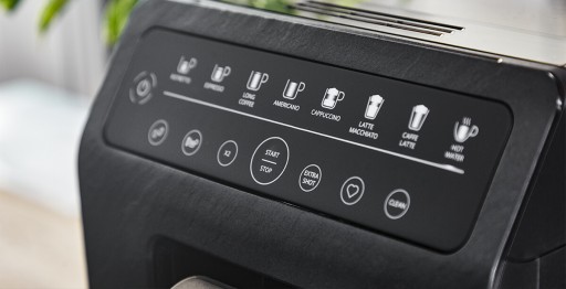 Prosty w obsłudze czarno-biały panel pozwala na zrobienie ulubionej kawy niezwykle szybko.