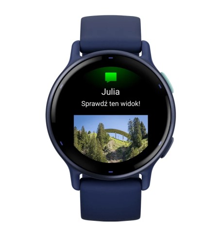 Wiadomości e-mail, wiadomości tekstowe i alerty możesz odbierać bezpośrednio na zegarku sparowanym ze smartfonem iPhone lub Android. W przypadku korzystania ze smartfona z systemem Android możesz odpowiadać na wiadomości tekstowe za pomocą klawiatury na zegarku i wyświetlać odebrane zdjęcia bezpośrednio na ekranie zegarka.