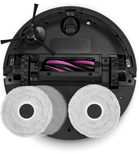- Czyszczenie mopów – zainstalowane na robocie ściereczki mopujące są regularnie myte i nawilżane przez podstawkę czyszczącą stacji dokującej z wykorzystaniem czystej wody ze zbiornika.
