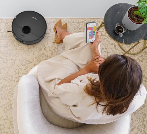 Łączność WiFi pozwala także na sterowanie funkcjami odkurzacza za pomocą aplikacji mobilnej, w tym za pomocą poleceń głosowych przez Amazon Alexa i Google Assistant.