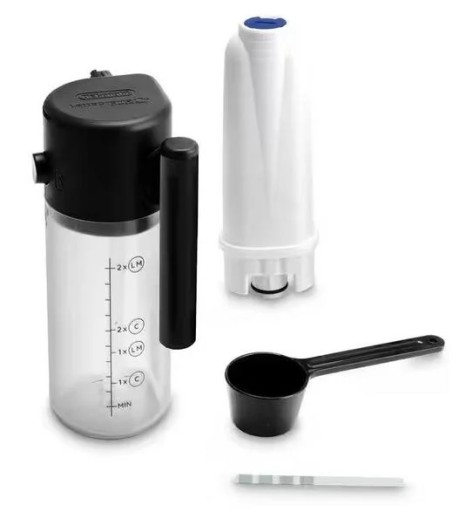 - W opakowaniu znajdziesz: Ekspres, Filtr wody, Łyżeczka do dozowania kawy mielonej, Pasek do mierzenia poziomu twardości wody, Skrócona instrukcja obsługi