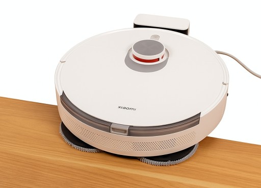 Xiaomi S20+ w eleganckiej, śnieżnobiałej wersji prezentuje się niezwykle lekko i nowocześnie, dzięki subtelnym akcentom i matowej obudowie. Pomimo swych kompaktowych wymiarów (średnica 350 mm, wysokość około 9,7 cm) potrafi poruszać się sprawnie pod meblami i w ciasnych zakamarkach.